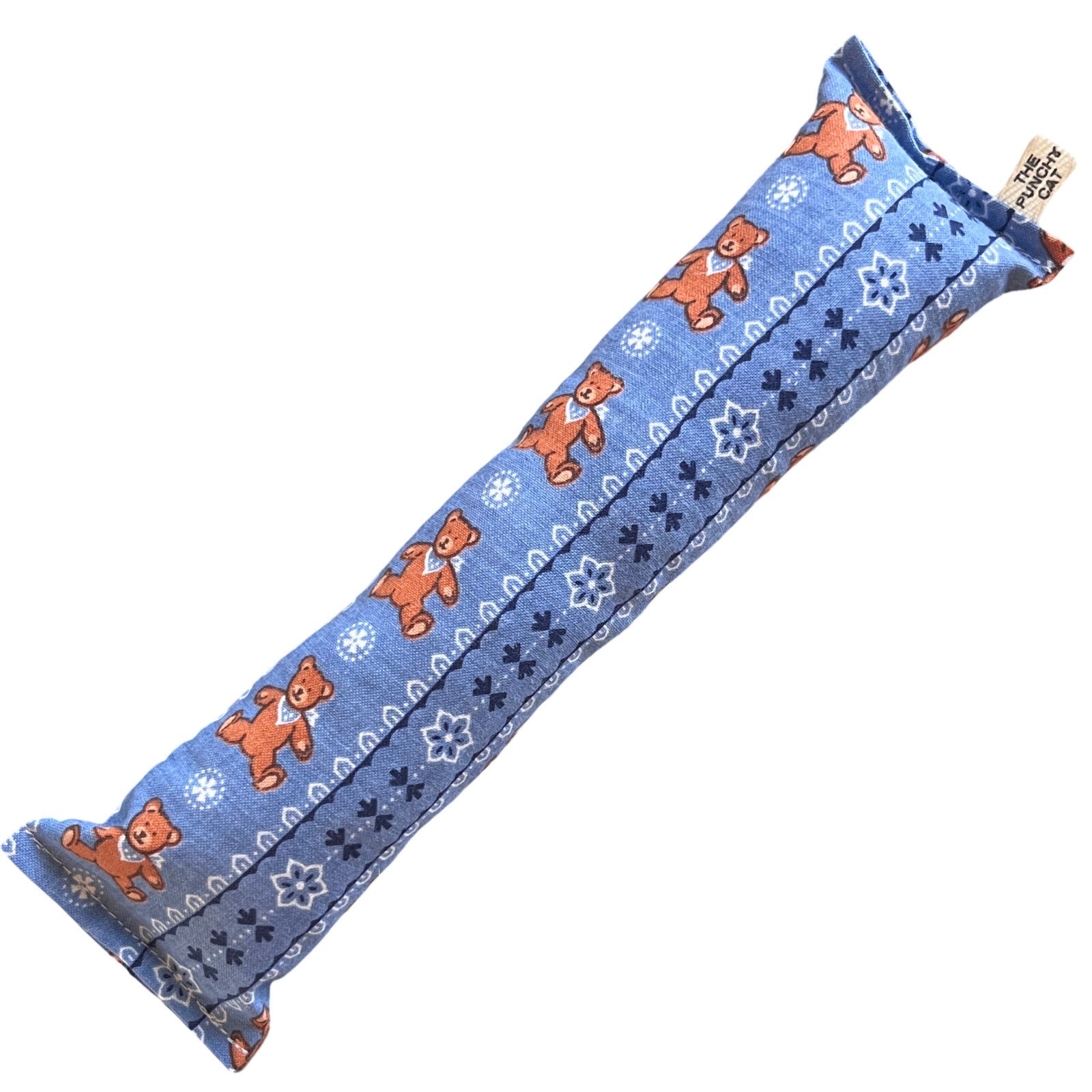 Print fabric kicker log filled with potent silvervine and catnip mix and polyfill stuffing as well as a rattle disk to entice your kitty's prey drive.